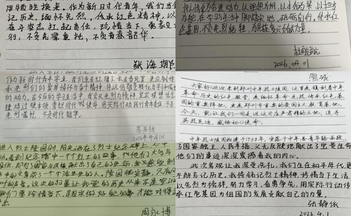 全体师生抵达陵园后,在老师引导下于烈士碑前回望抗战时期中牟及豫东地区的革命历程,感悟先烈的崇高气节与家国情怀;随后怀着崇敬之心举行敬献鲜花仪式,列队肃立依次献花、集体行三鞠躬礼,深切缅怀革命英烈。